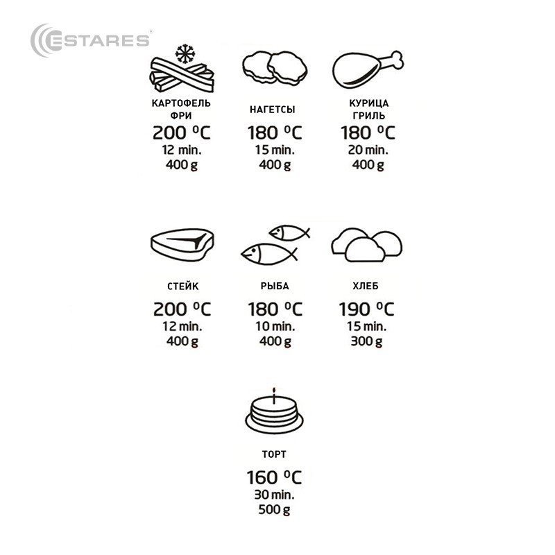 Благодаря использованию быстрой циркуляции горячего воздуха и гриля можно приготовить множество блюд.
