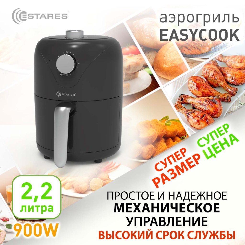 Аэрогриль EASYCOOK 900W обеспечивает простой и здоровый способ приготовления ваших любимых продуктов.