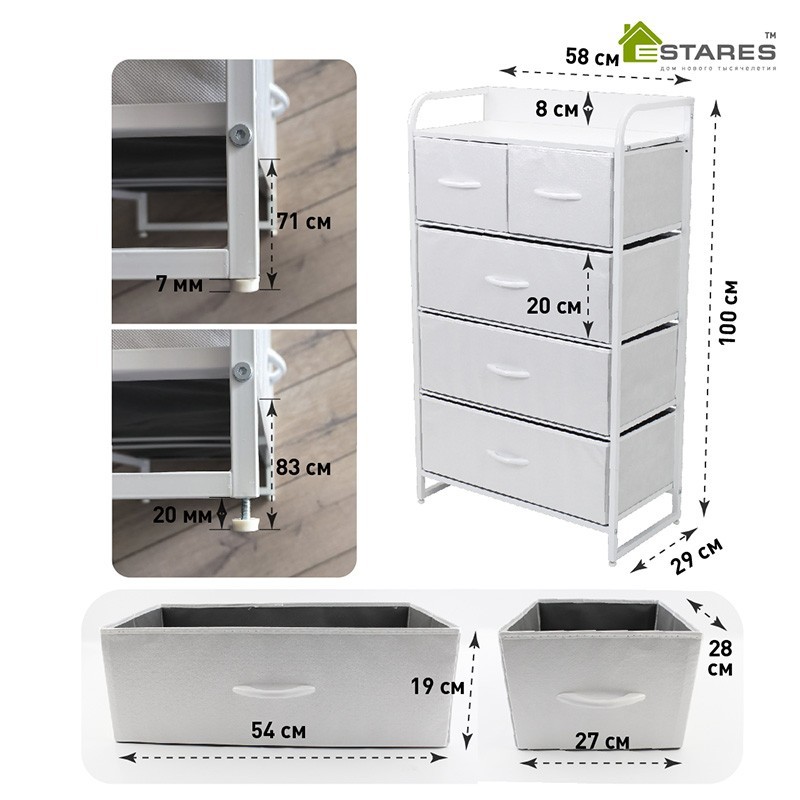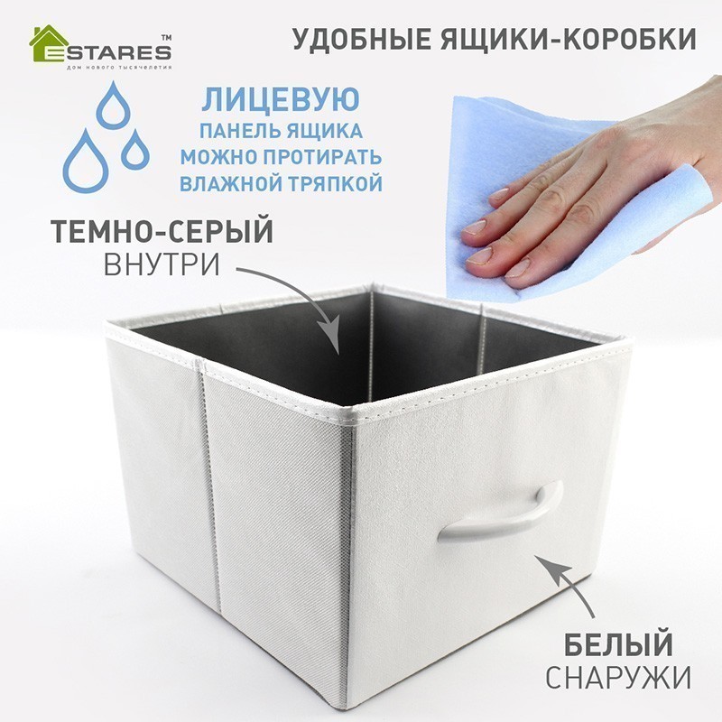 Материал шкафов: плотный картон и МДФ (для жесткости ящика), ткань, нетканный материал, дерево (ручки)