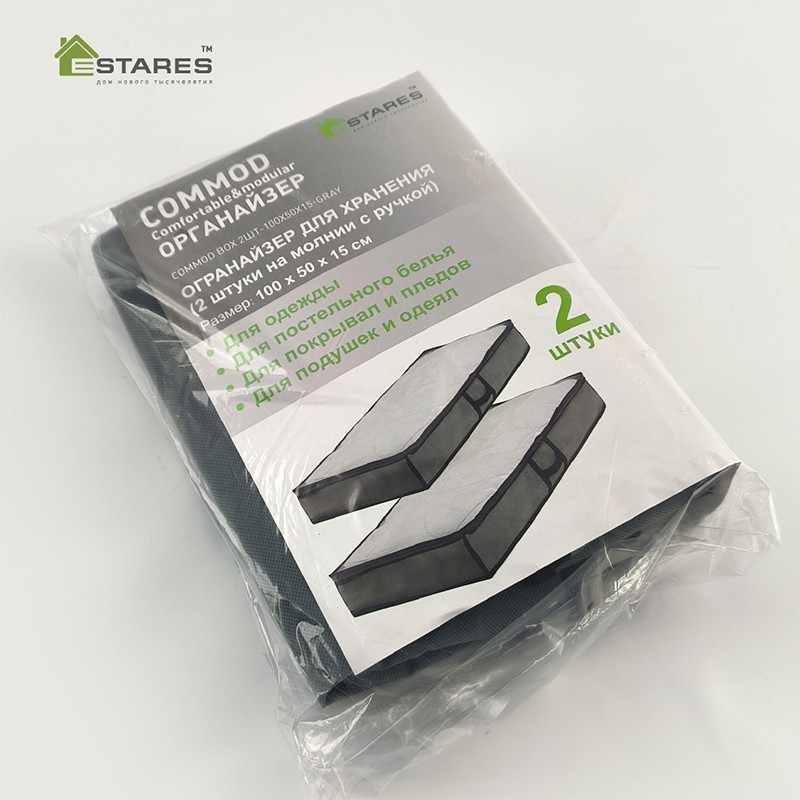 COMMOD BOX 2шт-100х50х15-GRAY органайзер для хранения (2 шт.на молнии с ручками) УУО00004228