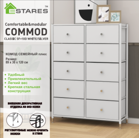 COMMOD classic 5F-10D-WHITE/SILVER-89x30x120 комод семейный плюс УУО00004598