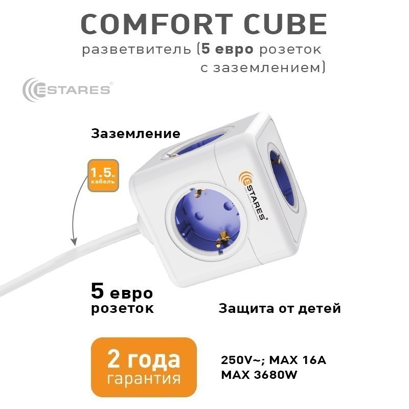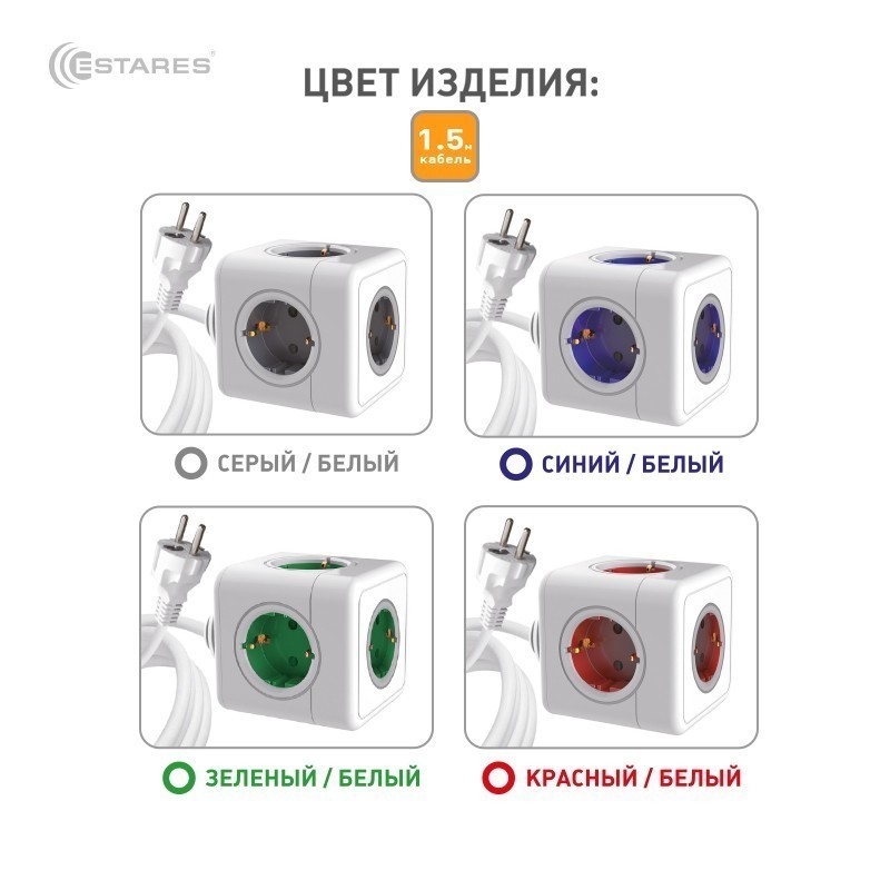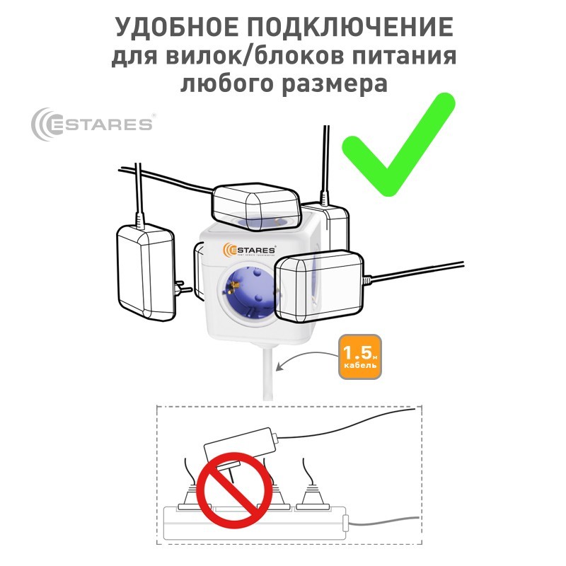 Удобный разветвитель в форме куба позволяет подключать блоки питания разных размеров одновременно.