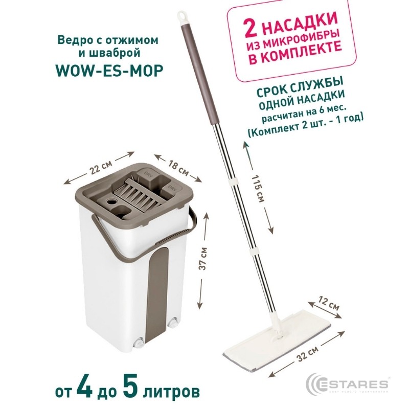 Швабра с ведром WOW ES-MOP-22х18х37/115-white/beige