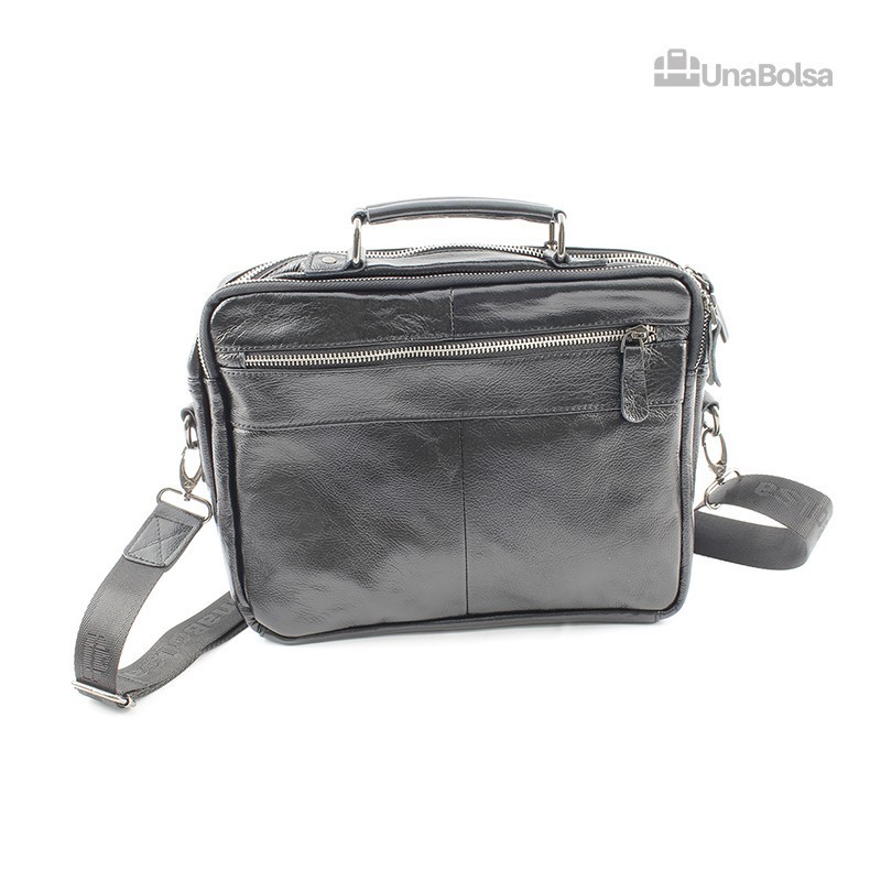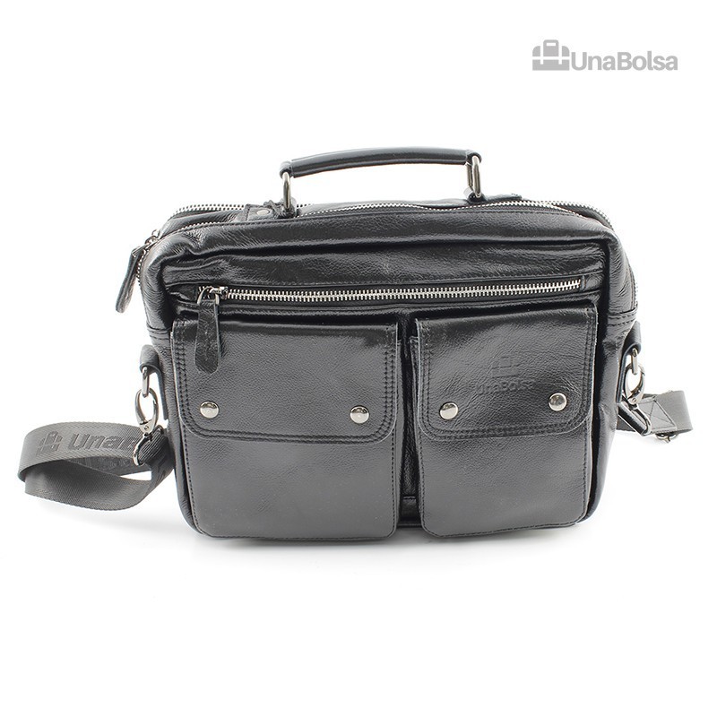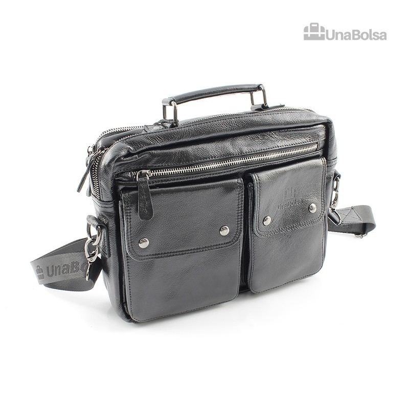 Сумка мужская из натуральной кожи UB-B304-290x230х100-black/black-молния/4 кнопки