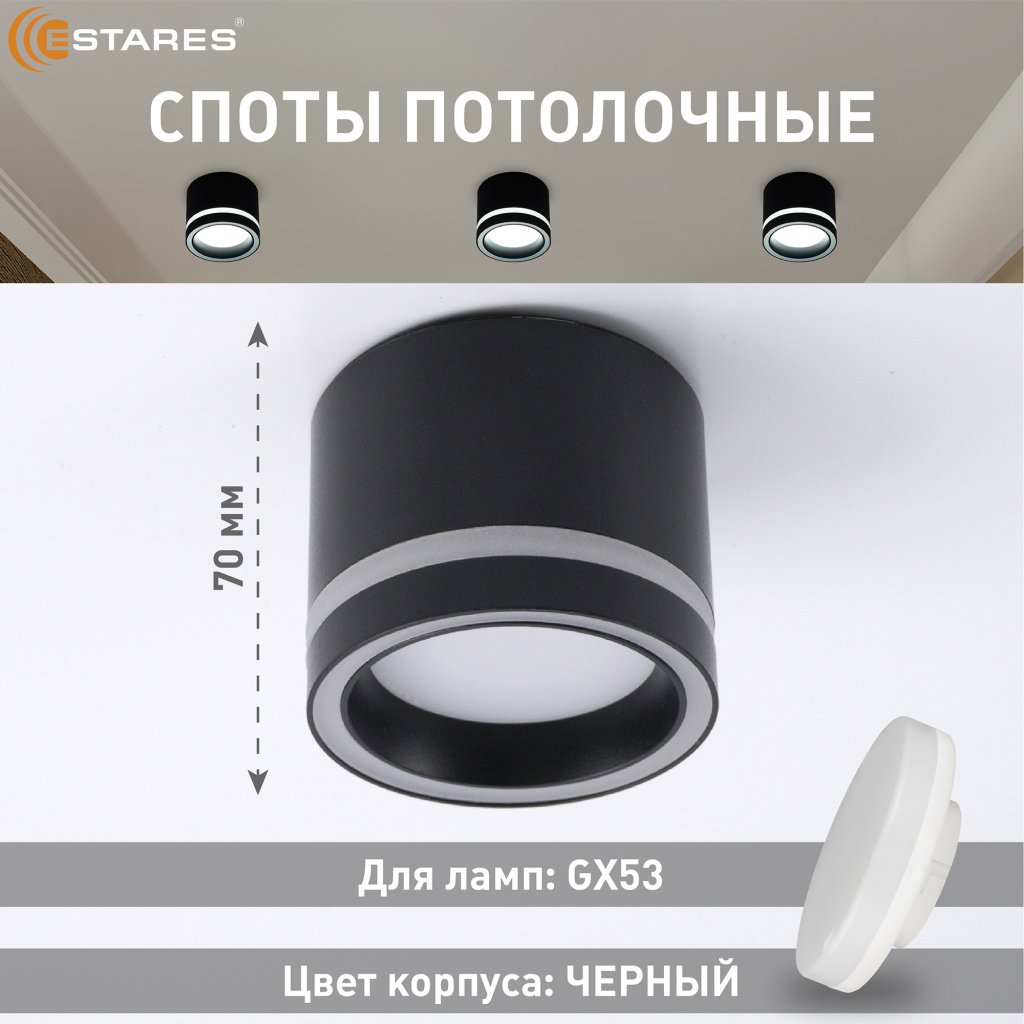 Светильник GELA 1xGX53-85x70-BLACK-220-IP20