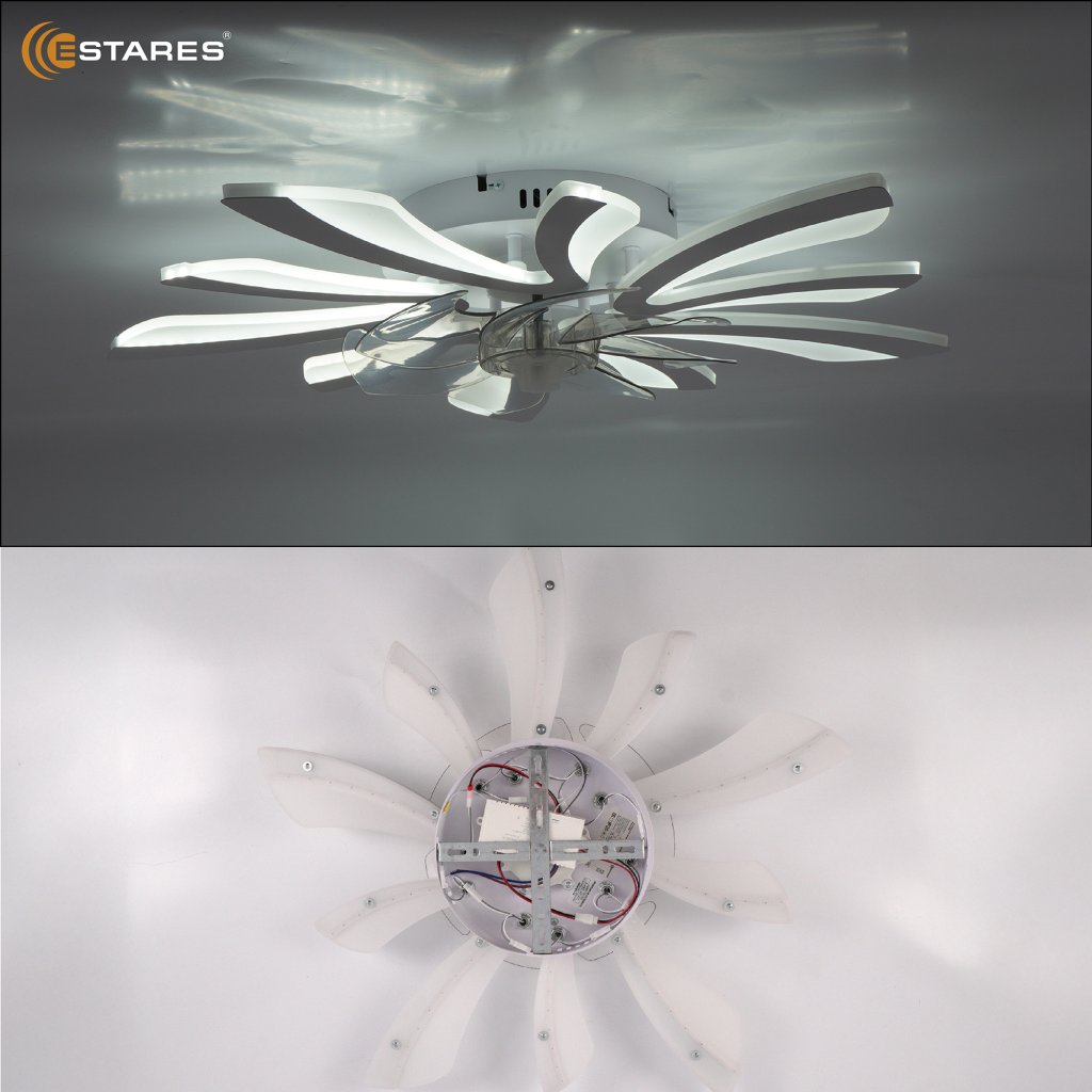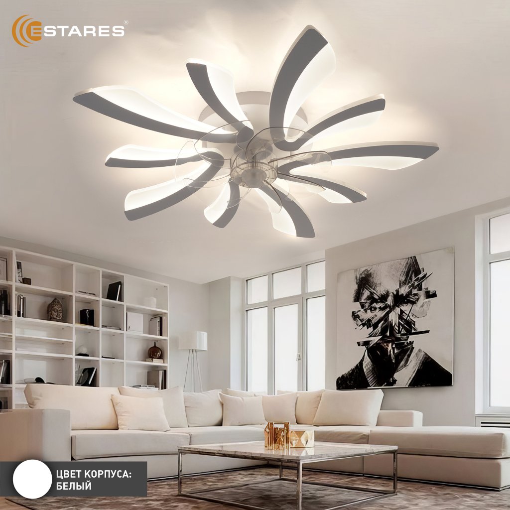 Уникальной особенностью является складываемые лопасти вентилятора. В выключенном состоянии вентилятор не видно в люстре.