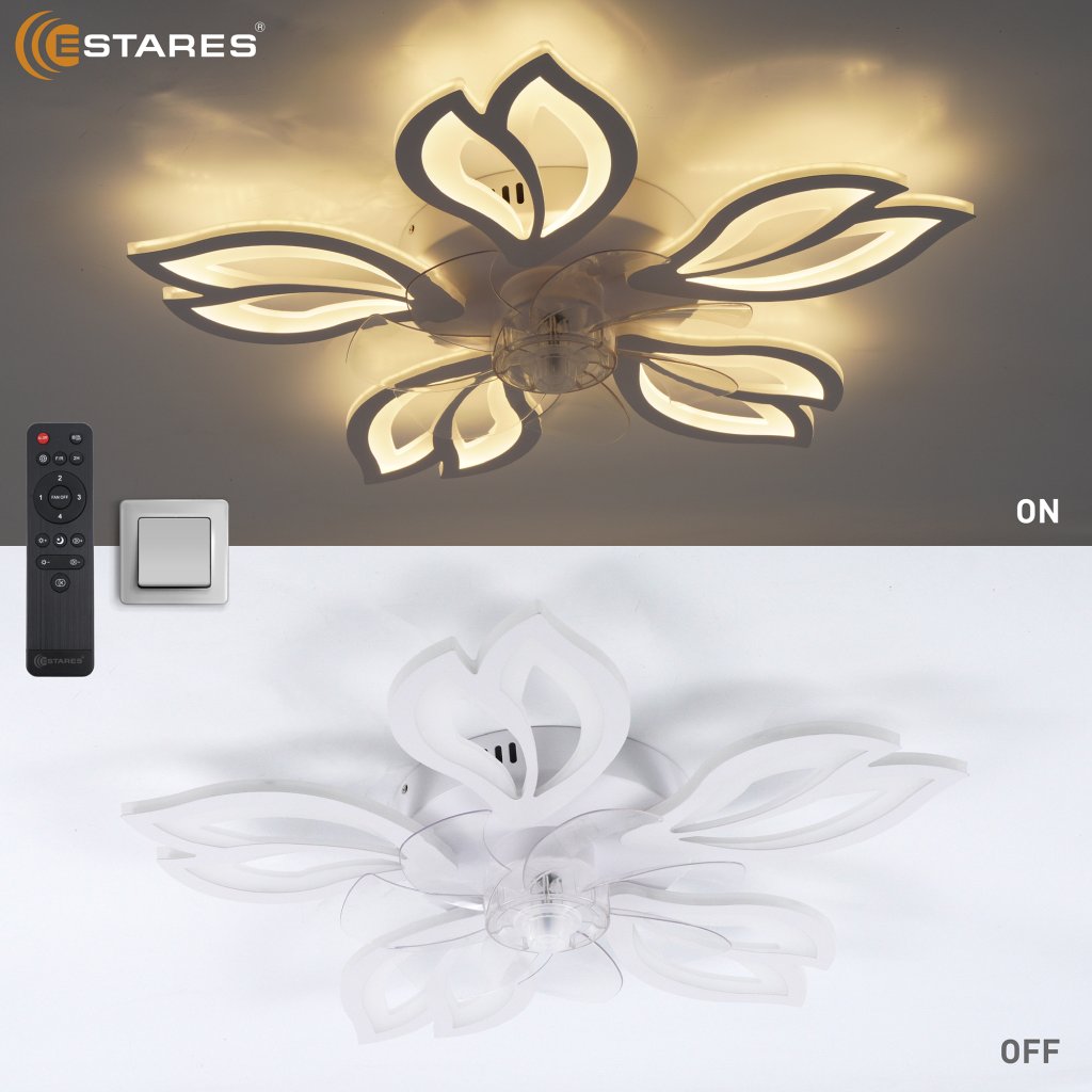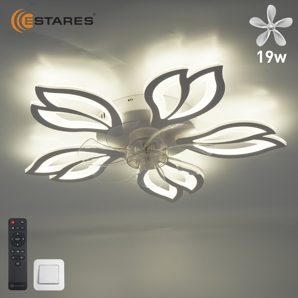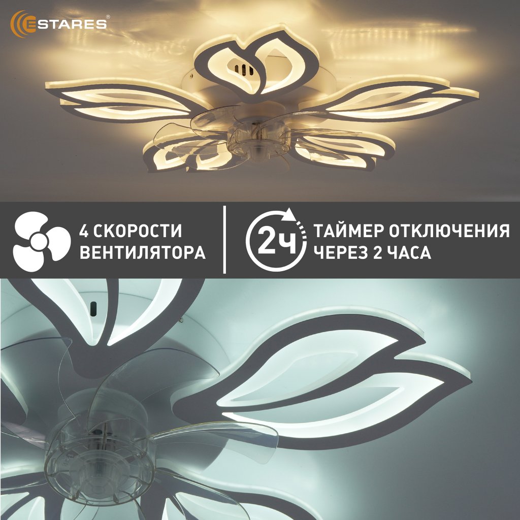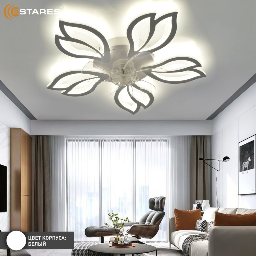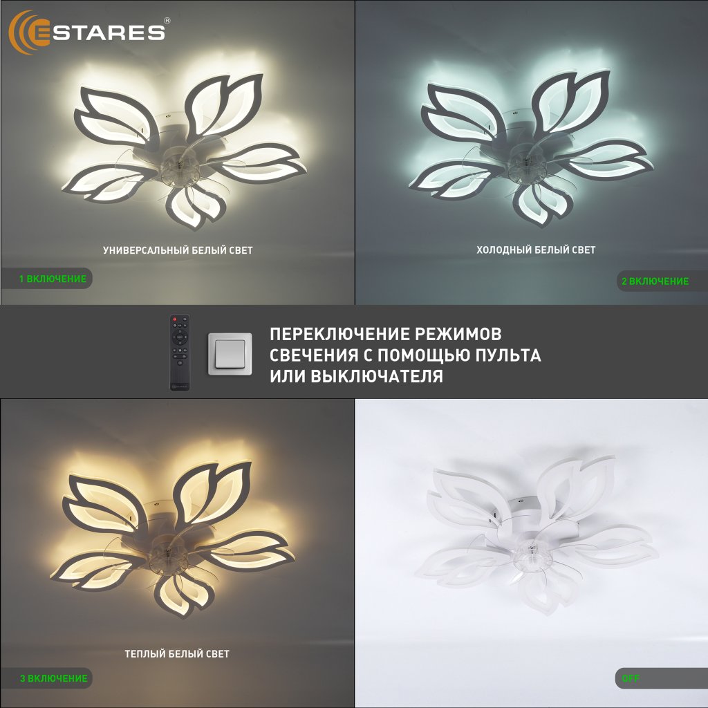 Уникальной особенностью является складываемые лопасти вентилятора. В выключенном состоянии вентилятор не видно в люстре.