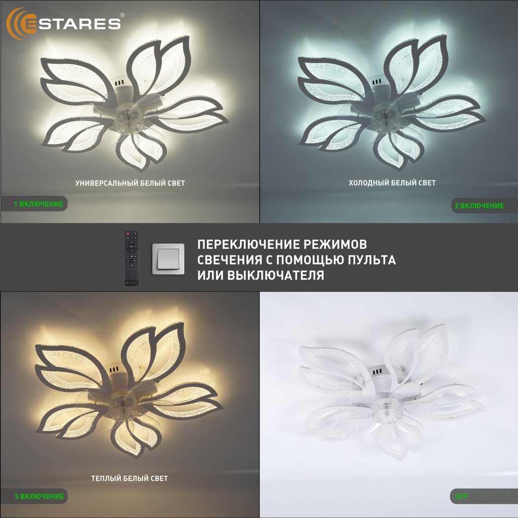 - управление с выключателя (нейтральный свет, холодный свет, теплый свет)