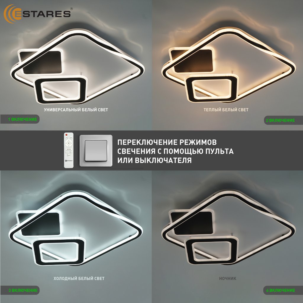 - управление с выключателя (нейтральный свет, теплый свет, холодный свет, ночник)