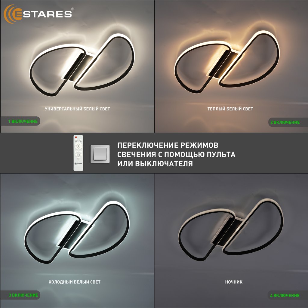 - управление с выключателя (нейтральный свет, теплый свет, холодный свет, ночник)