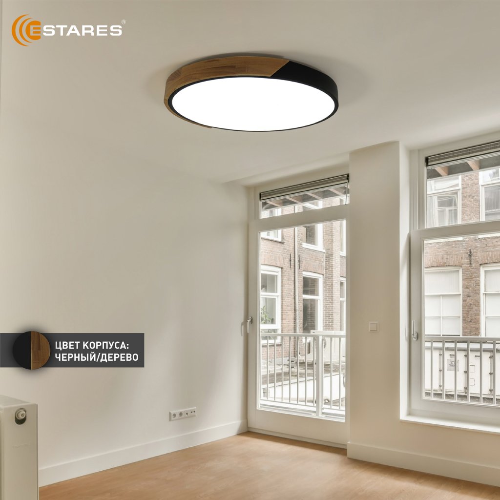 Корпус из алюминия и натурального дерева, рассеиваетель ПММА, встроенный драйвер, крепление на скобу
