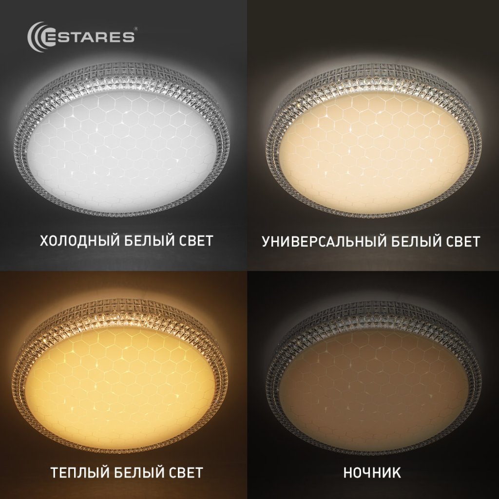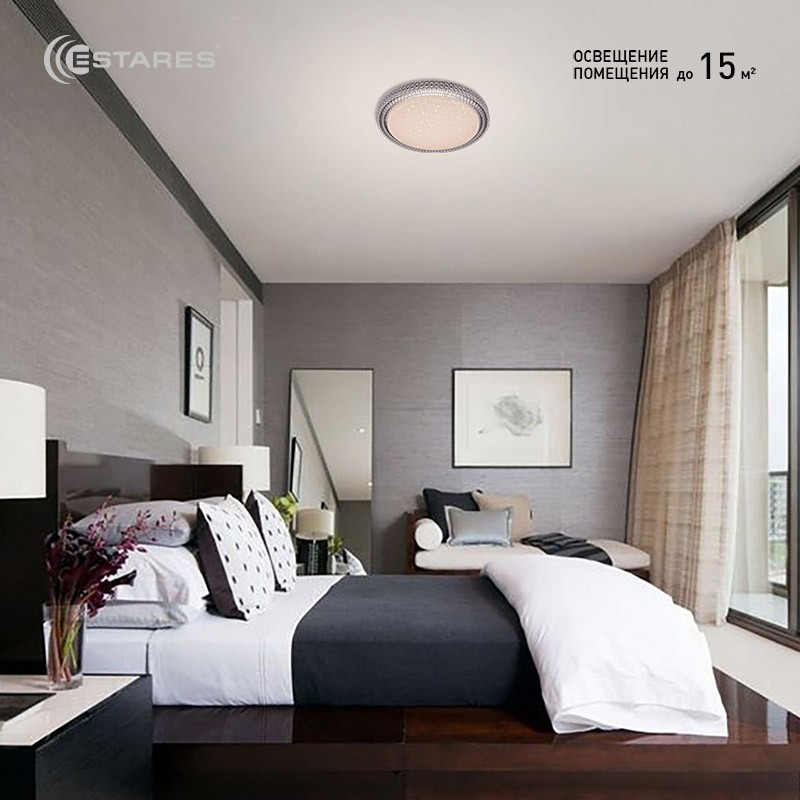 Модель 2019 года. Оптимален для освещения комнаты до 15 кв.м. В комплекте поставляется пульт 2,4G. (Батарейка 2032 - не входит в комплект). Легкий и не нагревается, подходит для всех типов потолков. Функция памяти, прошивка пульта и управление описано в инструкции к светильнику или на ютубе раздел Estares. Отличный подарок на новоселье, маме, папе, сыну, дочке, родственникам и друзьям. Люстра подойдет для интерьера детской, гостиной, зала, спальни, прихожей или кухни, загородного дома.
