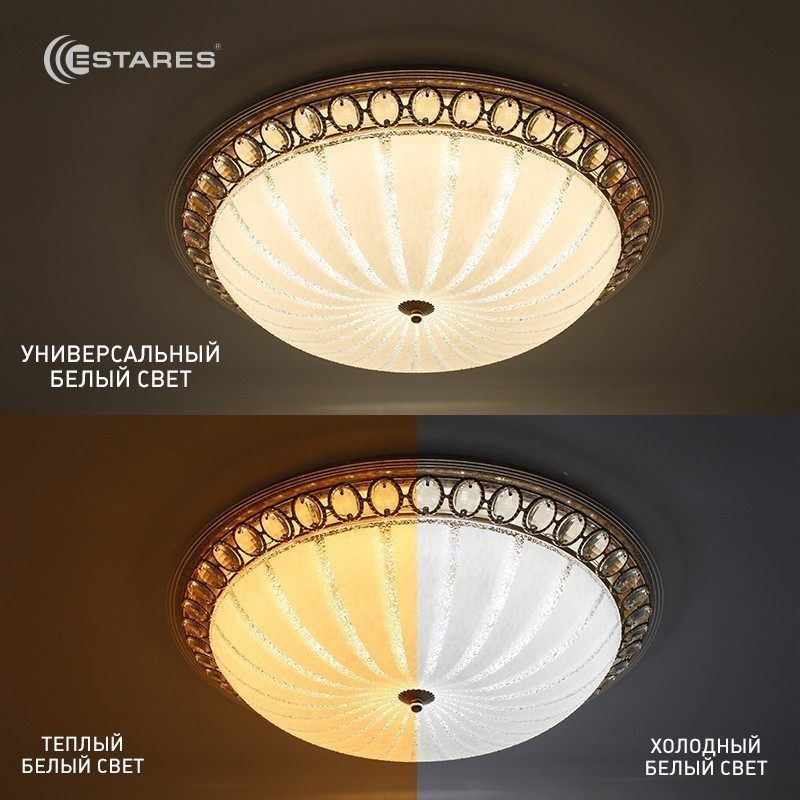 Модель 2021 года. В классическом стиле. Подходит для помещений площадью до 25 кв. м. Освещает помещение на 180 градусов. Подходит для детской комнаты, спальни и кухни. Не нагревается, легкий, подойдет для всех видов потолков. Безопасен для зрения: нет ультрафиолетового излучения, нет пульсации. Обзор люстры можно посмотреть на ютуб канале Estares. Купить люстру как Отличный подарок на новоселье, в комнату маме, бабушке, жене в спальню, детям в детскую, друзьям и родственникам к празднику.