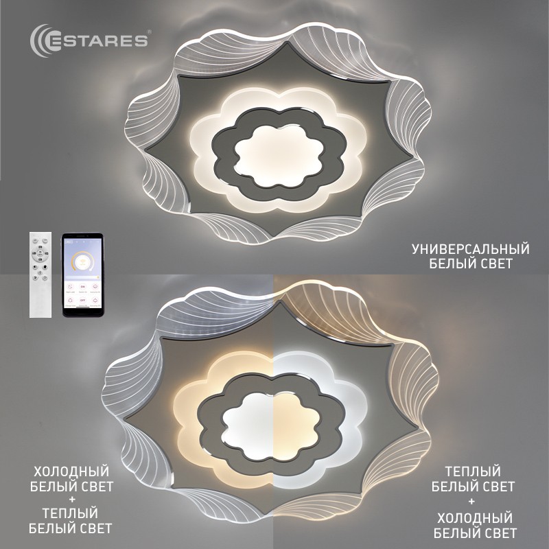 Светодиодный светильник (люстра) с ДПУ с управлением через приложение IOS, Android