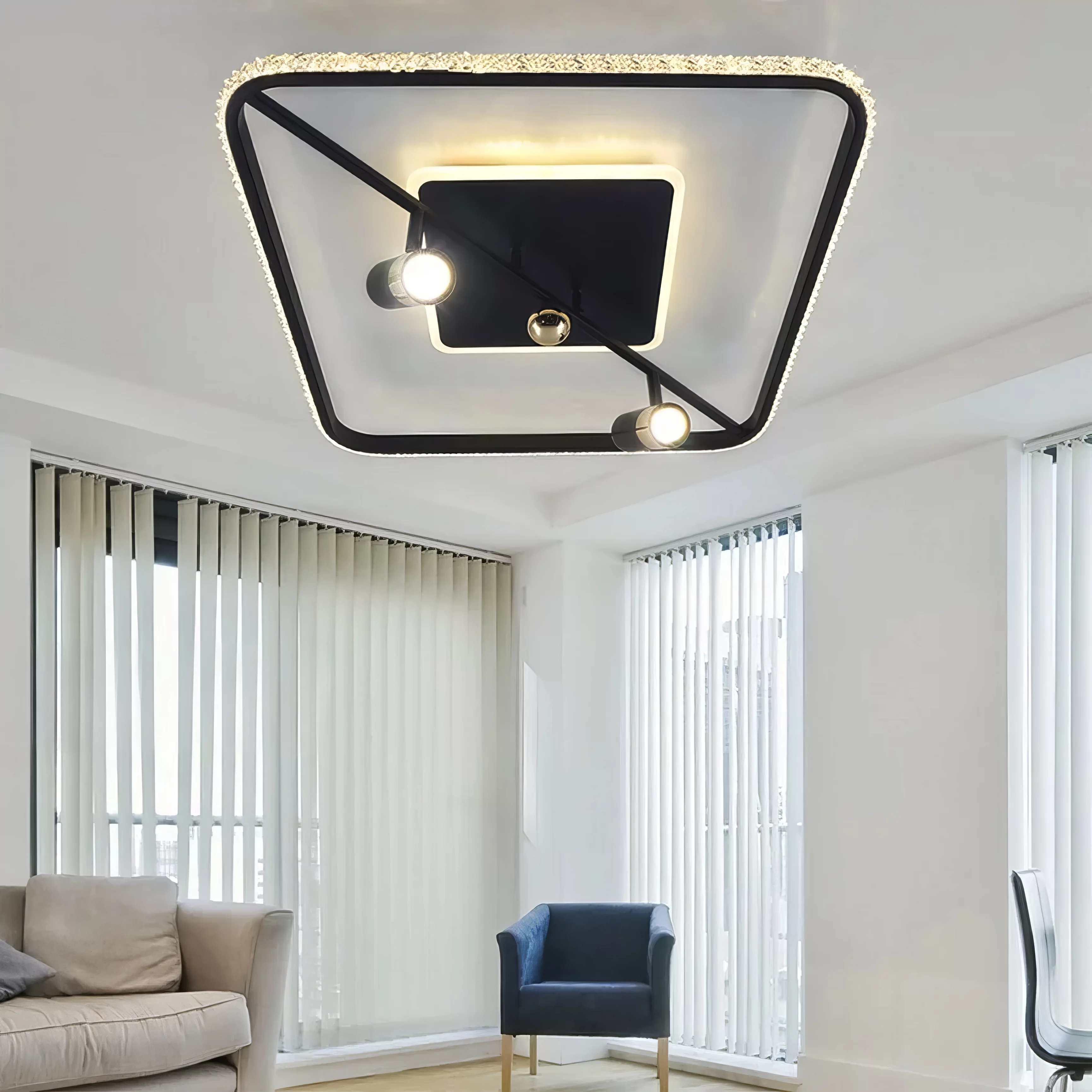 Чем просторнее помещение, тем больше источников света необходимо для равномерной подсветки, достижения нормативного показателя освещенности. Если вы выбрали варианты с одной лампочкой, предусмотрите несколько точек освещения на потолке и в функциональных зонах. Такой прием поможет избежать затемненных участков, повысить качество иллюминации.