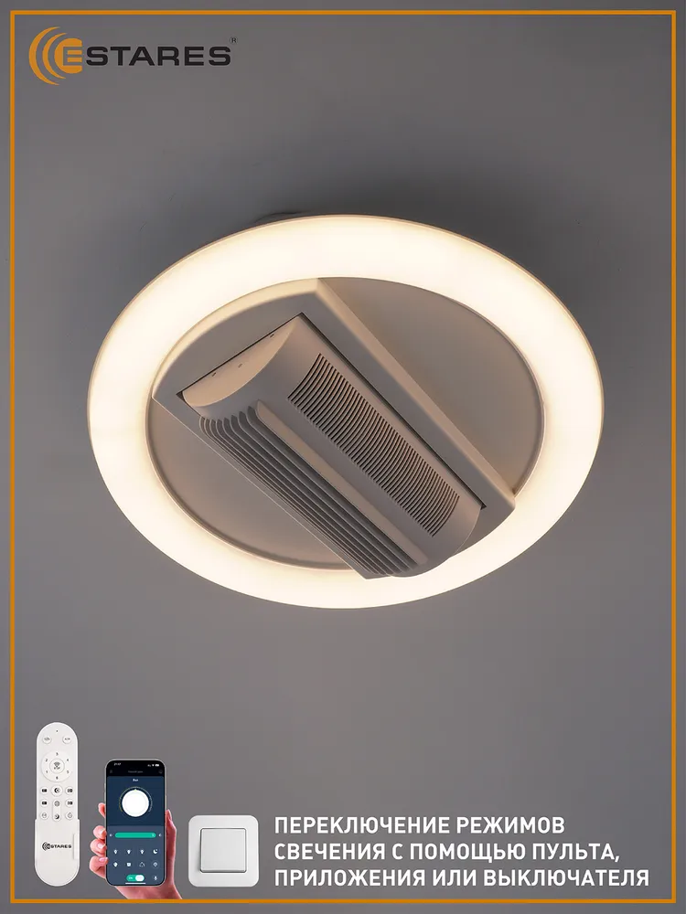 Потолочная люстра-вентилятор – это не просто осветительный прибор, а многофункциональное устройство, сочетающее в себе элегантность и практичность. Это решение для тех, кто ценит комфорт и стремится к рациональному использованию пространства в своем доме. Модель бренда Estares сочетает элегантный дизайн, эффективное охлаждение и яркое освещение, становясь гарантией вашего комфорта и уюта в доме. Дополнительные светотехнические функции, возможность использования только системы охлаждения, выбор интенсивности работы, разные варианты включения, режимы интенсивности позволяют создать комфортный микроклимат и освещенность в соответствии с временем суток и настроением. Мы уверены в надежности продукции и предлагаем расширенную гарантию, подтверждающую высокое качество и долговечность изделия. Благодаря интуитивно понятной конструкции и подробной инструкции, вы сможете самостоятельно установить ее, не прибегая к помощи специалистов. Экономьте время и деньги, наслаждаясь комфортом и стилем вашего дома.