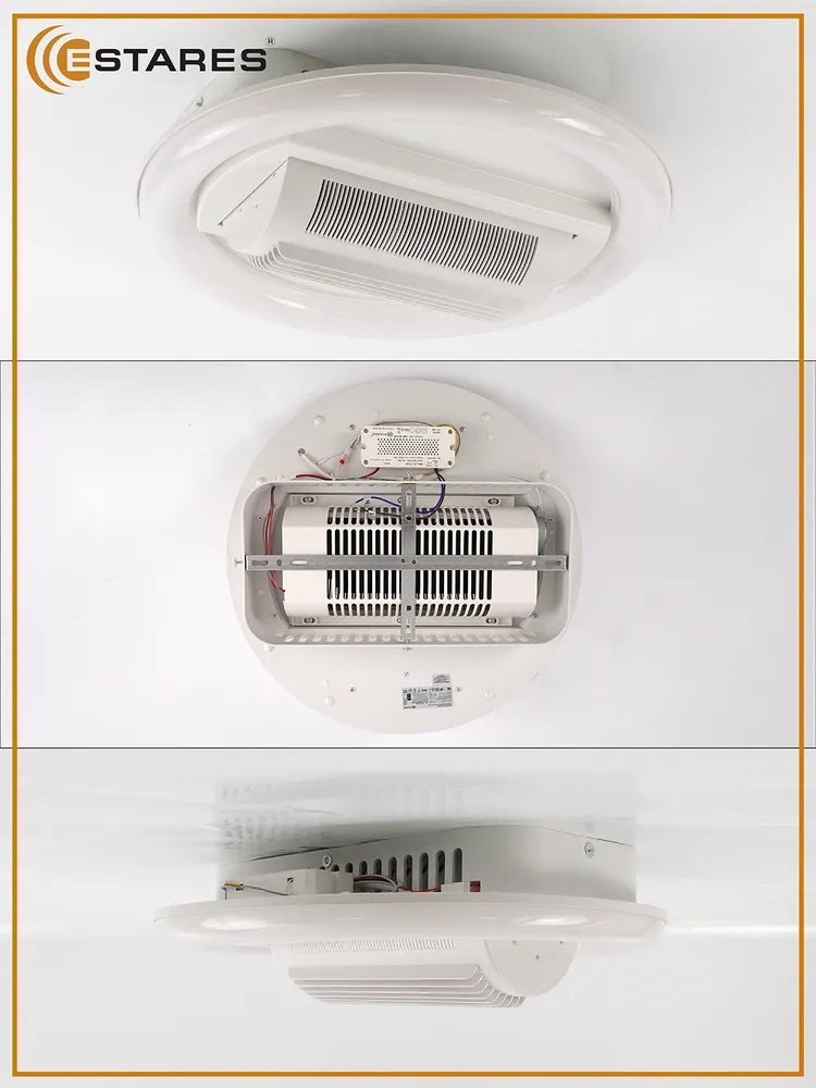 Потолочная люстра-кондиционер бренда Estares – это многофункциональный прибор, который сочетает возможности создания качественного освещения и охлаждения. Такое светотехническое климатическое оборудование необходимо в любой комнате, а благодаря сдержанному дизайну легко впишется в интерьер любого помещения в доме и офисе. Потолочная люстра-кондиционер, расположенная на кухне или в столовой, помогает бороться с жаром и запахами. Она способствует циркуляции свежего воздуха, а в жаркое время года обеспечит комфорт, охлаждая пространство. В спальне и детской – создает комфортный микроклимат для отдыха. В гостиной универсальный светильник с кондиционером станет стильным акцентом, который не только создает комфортный микроклимат, но и украсит комнату, дополнив как классический, так и современный интерьер.