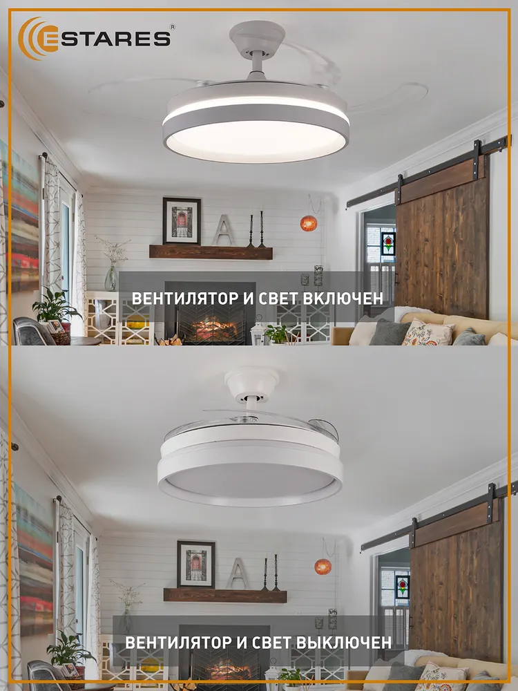 Люстра-вентилятор Estares – это элегантное и функциональное решение для освещения и создания комфортного микроклимата в помещении. Она сочетает в себе два полезных устройства в одном корпусе, что позволяет сэкономить место и оптимизировать интерьер. Объединение двух функций в одном устройстве освобождает место на потолке и стенах. Это особенно актуально для небольших помещений, где каждый квадратный метр на счету. Она служит как источником света, так и эффективным средством охлаждения и циркуляции воздуха, что позволяет использовать ее круглый год.