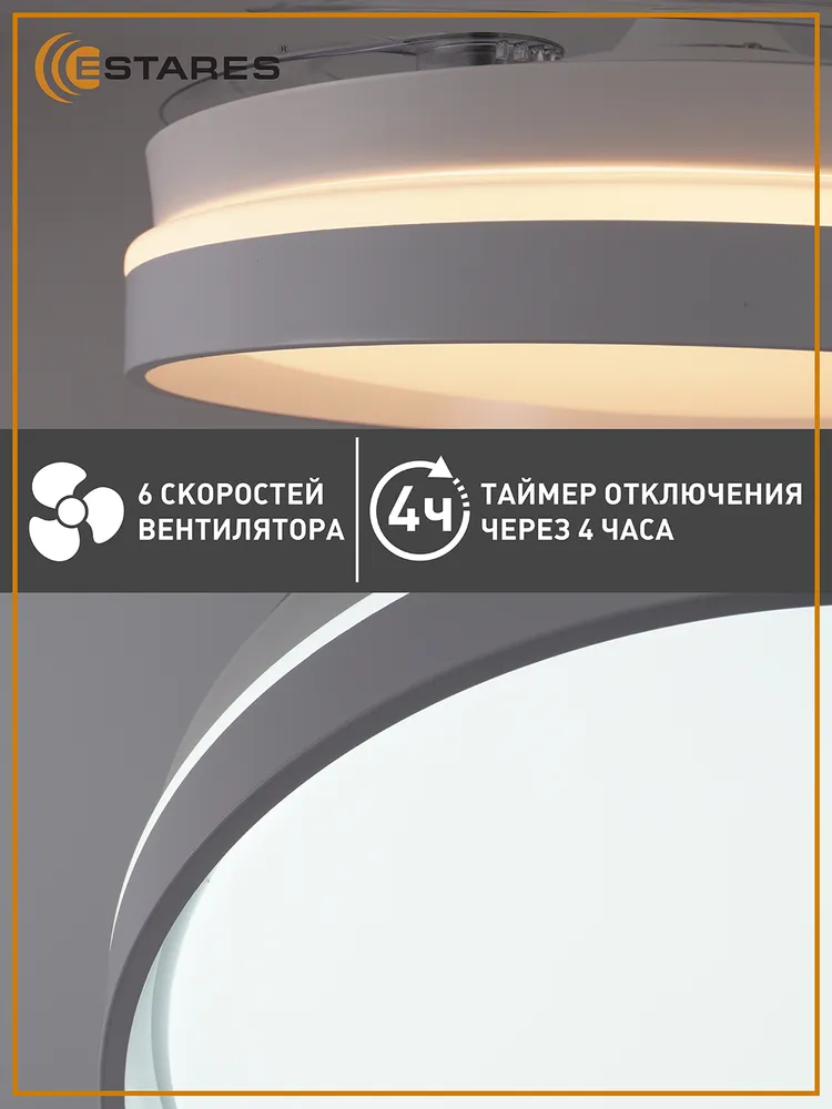 Потолочная люстра с вентилятором Estares со светодиодами – это инвестиция в комфорт, стиль и энергоэффективность вашего дома. Сочетая функции освещения и вентиляции, она предлагает практичное и эстетически привлекательное решение для любого помещения. Прибор экономит место и электроэнергию, помогает создать приятную атмосферу и дополнить интерьер. Мы уверены в качестве своей продукции, поэтому предлагаем покупателям расширенную гарантию.